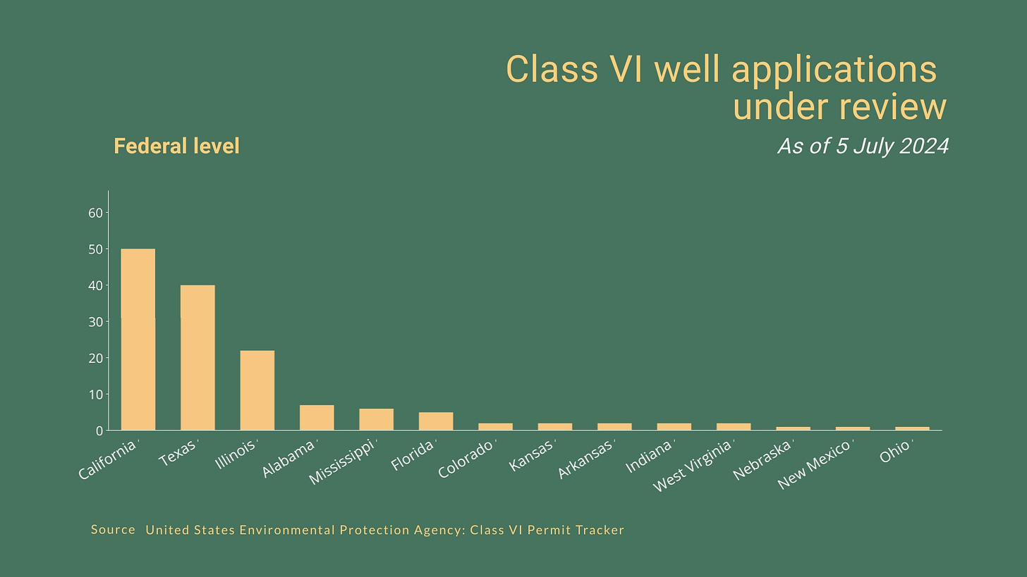 In the meantime, permitting procedures at the state level could also require improvements. To date, North Dakota has issued five Class VI permits, with three more applications pending. In Wyoming, it took Frontier Carbon Solutions ten months to obtain three Class VI permits, and another application from Tallgrass has been under review since December 2023. In turn, Louisiana, with its newly acquired primacy, has 65 Class VI applications from 26 projects (the largest number in the country), and the state is yet to demonstrate its ability to process such applications efficiently. Moreover, Louisiana is facing a lawsuit from three environmental groups – the Deep South Center for Environmental Justice, Healthy Gulf, and the Alliance for Affordable Energy – that seek to reverse the EPA’s decision to grant Louisiana Class VI primacy. If the US Court of Appeals for the Fifth Circuit upholds the case, all pending applications in Louisiana will be in limbo, with projects likely to be put on hold until the state and federal authorities address the issue.